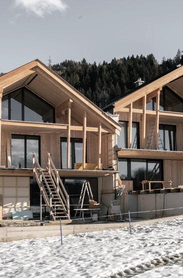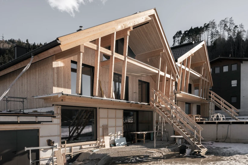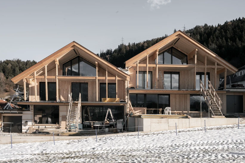 Reihen- und DoppelhäuserAusgeführte LeistungenFachplanung HolzbauBauweiseHolzrahmenbauweiseFertigstellung In Ausführung, Fertigstellung 2026Fotos © Johannes Oberhollenzer