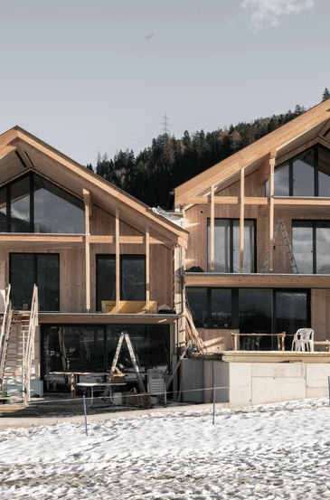 Reihen- und DoppelhäuserAusgeführte LeistungenFachplanung HolzbauBauweiseHolzrahmenbauweiseFertigstellung In Ausführung, Fertigstellung 2026Fotos © Johannes Oberhollenzer